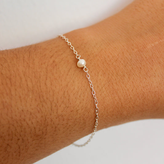 DAINTY FRESHWATER PEARL CHARM BRACELET - Yellow Gold & Silver