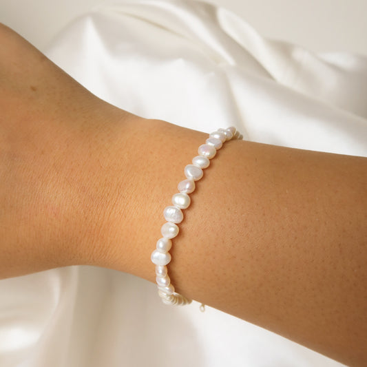DAINTY FRESHWATER PEARL BEADED BRACELET - Yellow Gold