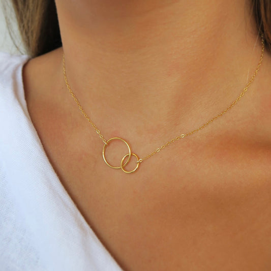 LOCKED CIRCLES NECKLACE - Yellow Gold & Silver
