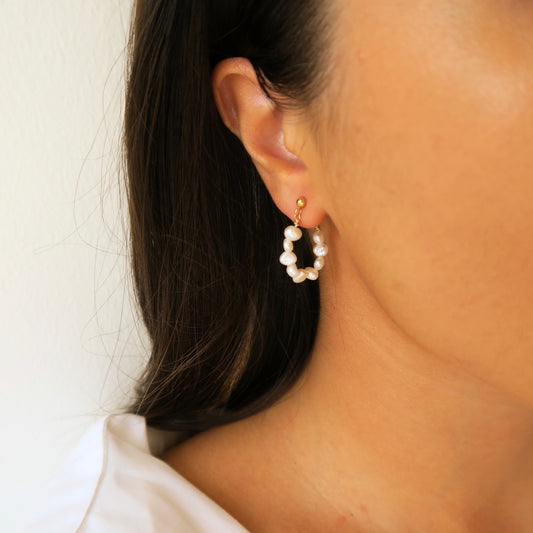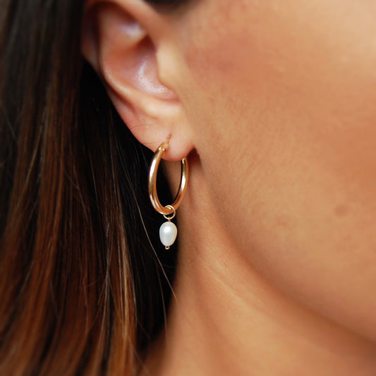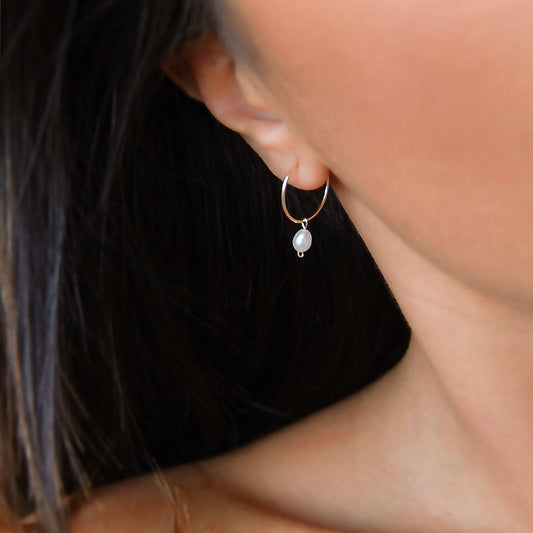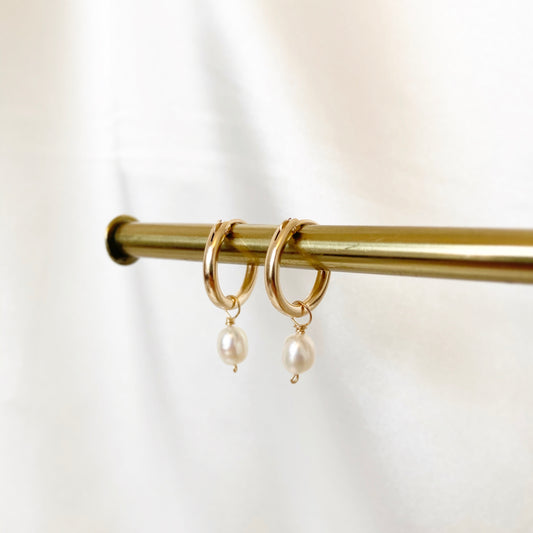 DAINTY FRESHWATER PEARL HOOP EARRINGS - Yellow Gold & Silver