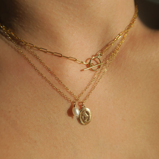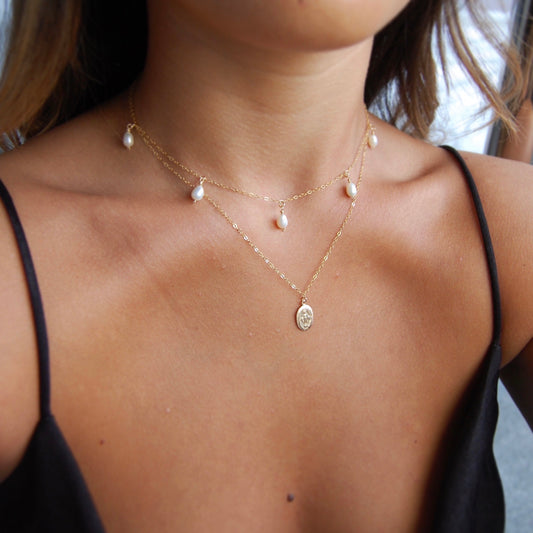 CLASSIC FRESHWATER PEARL NECKLACE - Yellow Gold & Silver