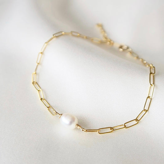 FRESHWATER PEARL CABLE BRACELET - Yellow Gold