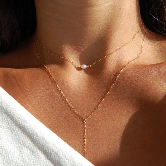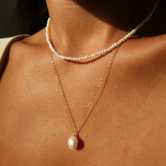 LITTLE FRESHWATER PEARL CHOKER NECKLACE - Yellow Gold & Silver