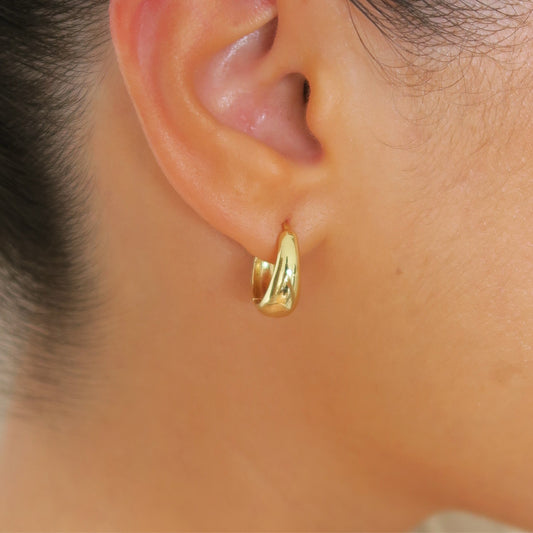 THICK HUGGIE HOOP EARRINGS - Yellow Gold