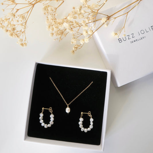 DAINTY FRESHWATER PEARL SET - Yellow Gold & Silver