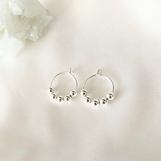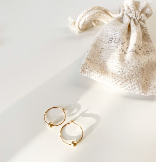 DAINTY BEAD HOOP EARRINGS - Yellow Gold & Silver