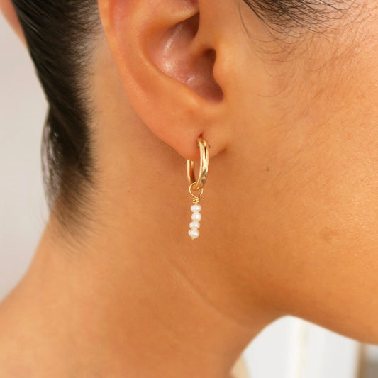DAINTY FRESHWATER PEARL HOOP EARRINGS - Yellow Gold & Silver