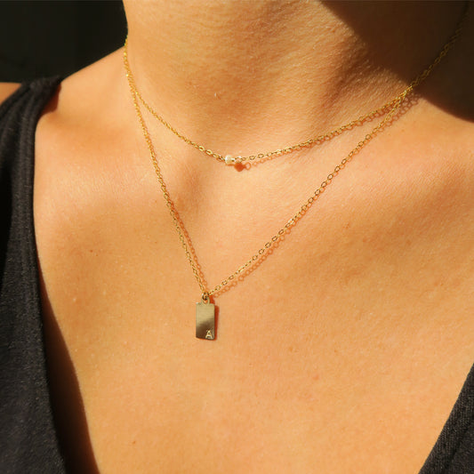 INITIAL OVAL TAG NECKLACE - Yellow Gold
