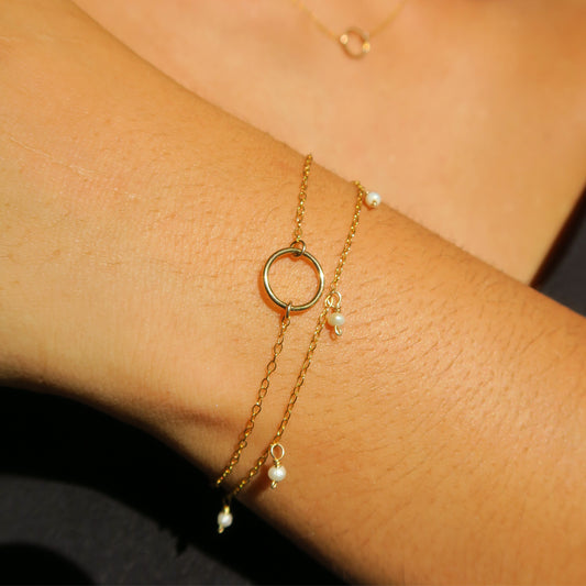 DAINTY FRESHWATER PEARL CHARM BRACELET - Yellow Gold & Silver